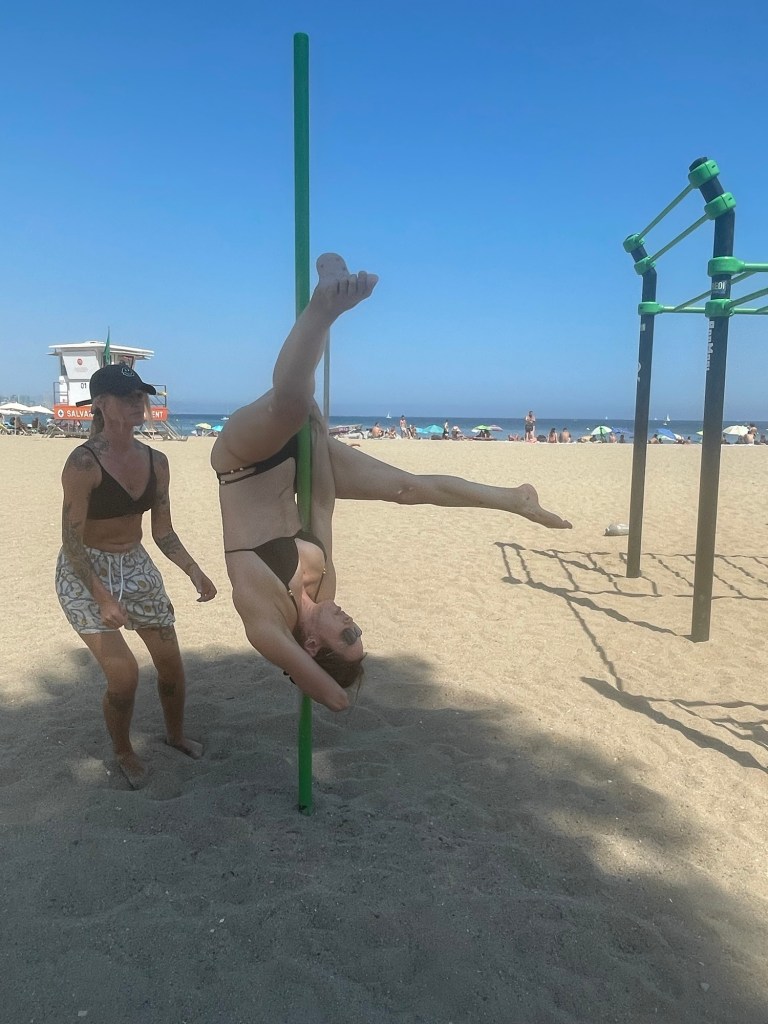 On a second visit to Barcelona the following year, I looked forward to returning to La Barceloneta Beach for some pole time. It’s directly next to other exercise equipment where a crowd of fitness enthusiasts gather.